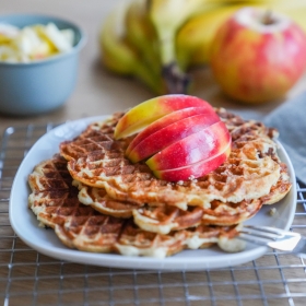 Recipe by ichsowirso at https://www.ichsowirso.de/rezept-fuer-waffeln-ohne-zucker-und-mehl/