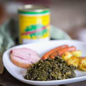 ) Jetzt kommt der Kasslerlachs mit in den großen Grünkohl Topf. Je nach Größe braucht das Stück ca. 20min zum Garen. Ich nehme die Würste in der Zeit raus, damit der Kassler gut mit Kohl bedeckt ist. Kurz vor dem Essen kommen sie Kohlwürste dann wieder in den Topf.
