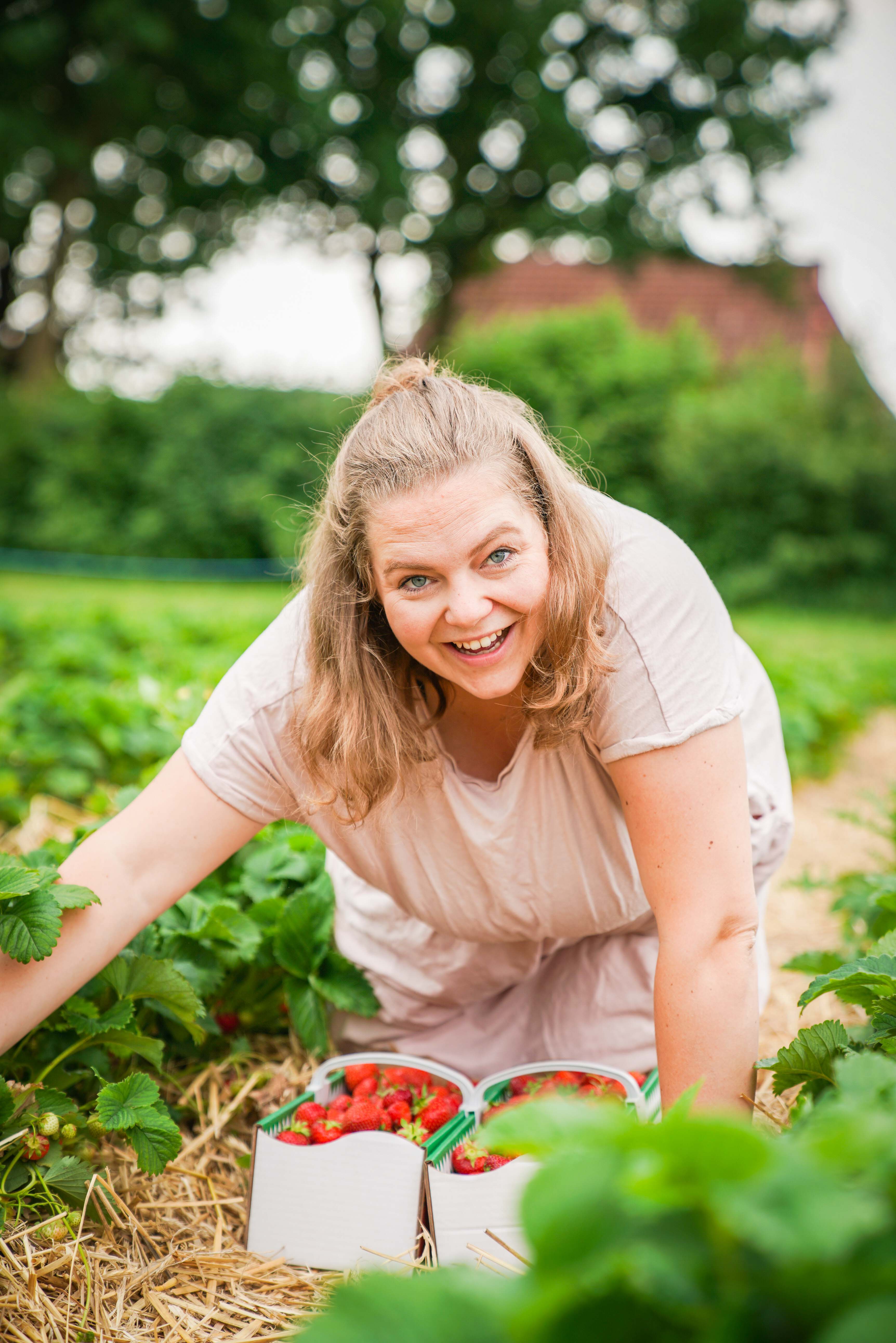 ) Alle Erdbeeren müssen entsrunkt und gewaschen werden.