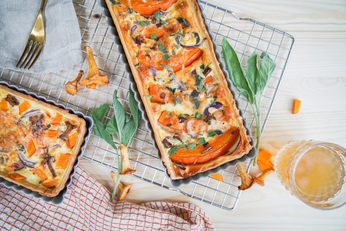Recipe by ichsowirso at https://www.ichsowirso.de/quiche-facts-mein-grundrezept-und-eine-mega-leckere-kuerbis-quiche-mit-pfifferlingen-und-salbei/
